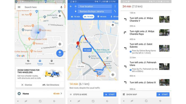 Google Maps menambahkan serangkaian fitur baru buat para pengguna di Indonesia, salah satunya berupa penunjuk jalan (direction) khusus untuk sepeda motor. Cara untuk mendapatkan rute navigasi untuk kendaraan roda dua ini mudah saja.